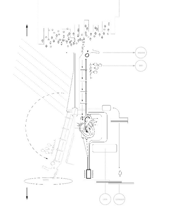 Figure 2 [click to enlarge]. Giraffe Diagram. CODA, 2012. From Niche Tactics: Generative relationships between Architecture and Site, Routledge, 2015. The diagram rejects the figure of the giraffe in favour of a representation of the niche, which includes the organism and those parts of the environment essential to the animal’s survival